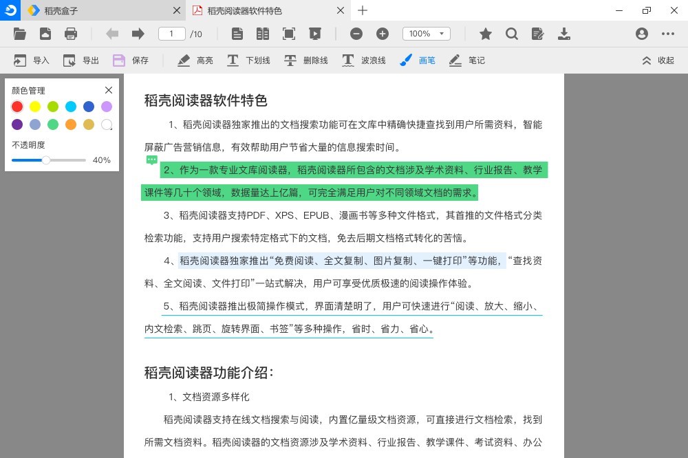 稻壳阅读器是一款面向海量文库资源的阅读软件,具有体积小、占用资源少、程序启动及打开文档速度快等优点;支持PDF、XDF、XPS、E、、AZW/AZW3、TXT、、OFD、DJVU、、CBR、CHM等30多种格式的文档,能够检索、阅读、下载超过十亿份的在线文档资料,可以全文复制、保存、打印、云端存储、安全加密等,并且完全免费。
