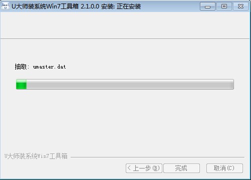 3.安装完成后,在电脑桌面上就会显示“U大师装系统Win7工具箱”快捷方式,并自动运行工具。
