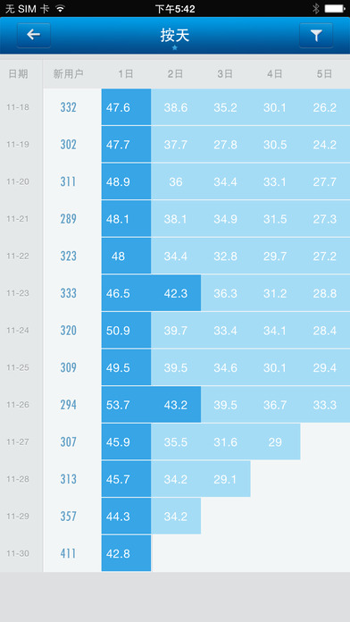 支持新增用户、活跃用户、启动次数、Top渠道、Top版本等多项指标,支持置顶,主要数据指标交叉过滤。