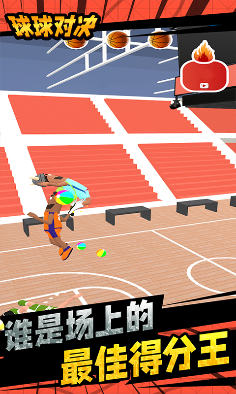 球球对决,一款全新的休闲对决小游戏。游戏以篮球灌篮得分玩法为主,操控美式画风的小英雄在篮球赛场疯狂,不断施展你的篮球技术,看看谁是最终的得分王。