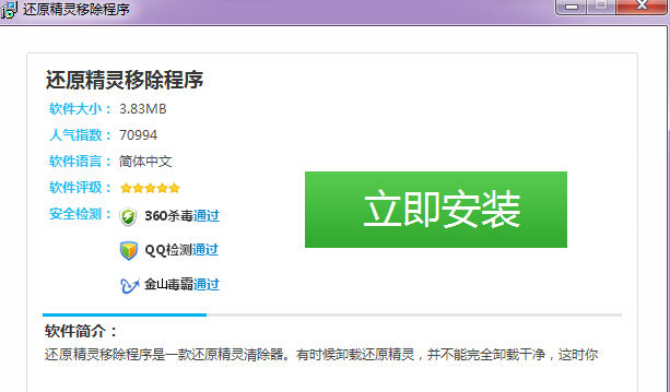 还原精灵移除程序是一款还原精灵清除器。有时候卸载还原精灵,并不能完全卸载干净,这时你需要一款还原精灵清除器还原精灵移除程序主要用于清除不需要还原精灵的密码。