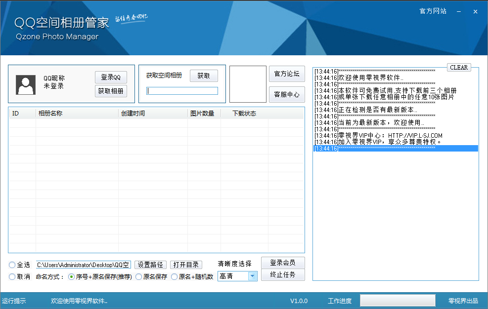 零视界QQ空间相册管家是一款由零视界工作室最新开发的2016QQ空间相册管理器,这款软件可以帮助广大QQ空间用户批量下载QQ空间相册里的图片,目前支持获取普通和高清两种图片格式,轻松下载QQ空间相册到电脑上备份。有需要的朋友欢迎免费下载使用!