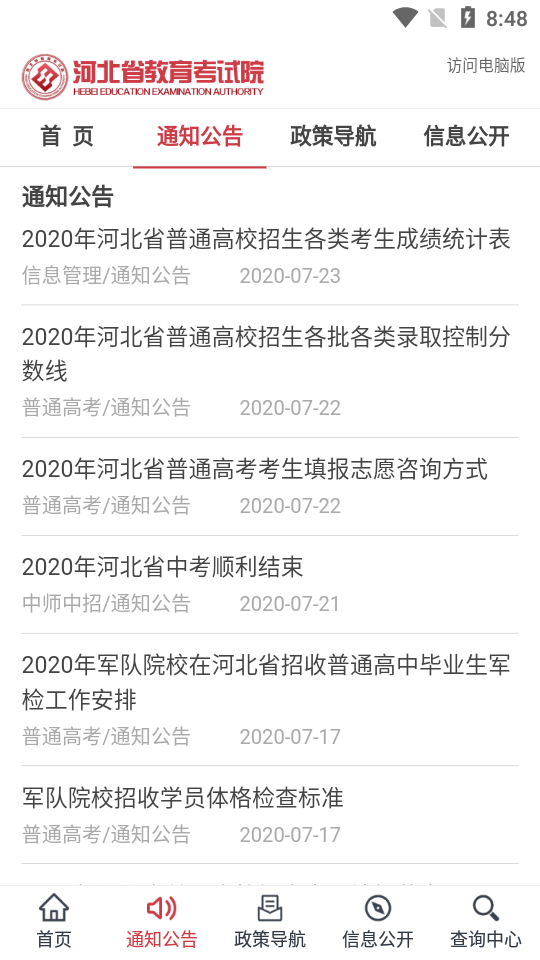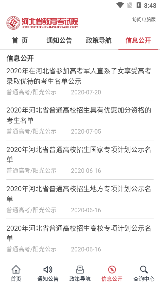 2020年河北省普通高校招生考试成绩查询。