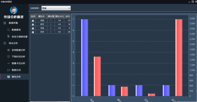 4、属性分析:支持以某一项目进行分析,查看其属性数据、成交件数和成交占比。