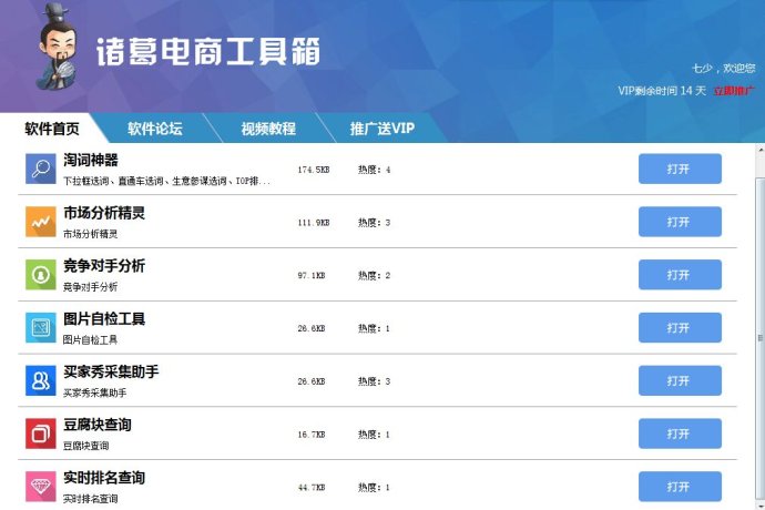 诸葛电商工具箱是一个电商工具合集软件,提供了多种实用的电商工具,包括淘词神器、市场分析精灵、竞争对手分析、图片自检工具、买家秀采集助手、豆腐块查询、试试排名查询等,帮助电商用户优化自己的店铺和商品,提高销售量。不管是淘宝老手还是新手店家,都是很实用的,软件操作,并且提供数据参考,绝对称的上是淘宝伴侣,需要的可以下载使用。