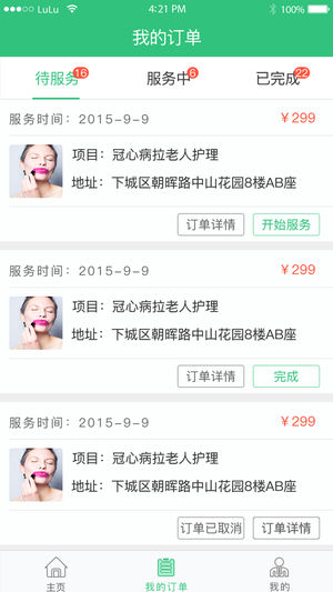陪护人员需要通过该应用进行注册,上传真实有效的信息(身份证,护理证书,姓名,头像等等),并需要通过我们平台的认证通过,才可以在平台营业。