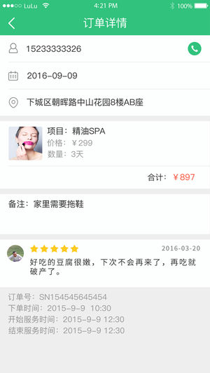 完成服务后填写一份陪护报告。同时,陪护人员还可以看见用户对自己服务的评价,以1到5分的形式打分。