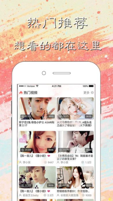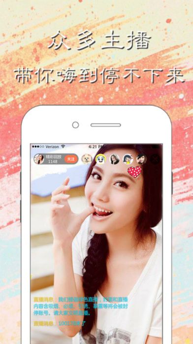 平台汇聚了超高颜值的俊男靓女,能说会唱的民间歌手,女神、、小可爱、好声音、小嗲妹各种风格的海量主播,总有喜欢的。7x24小时,直播不停,精彩不断,VV直播带你一起看世界。