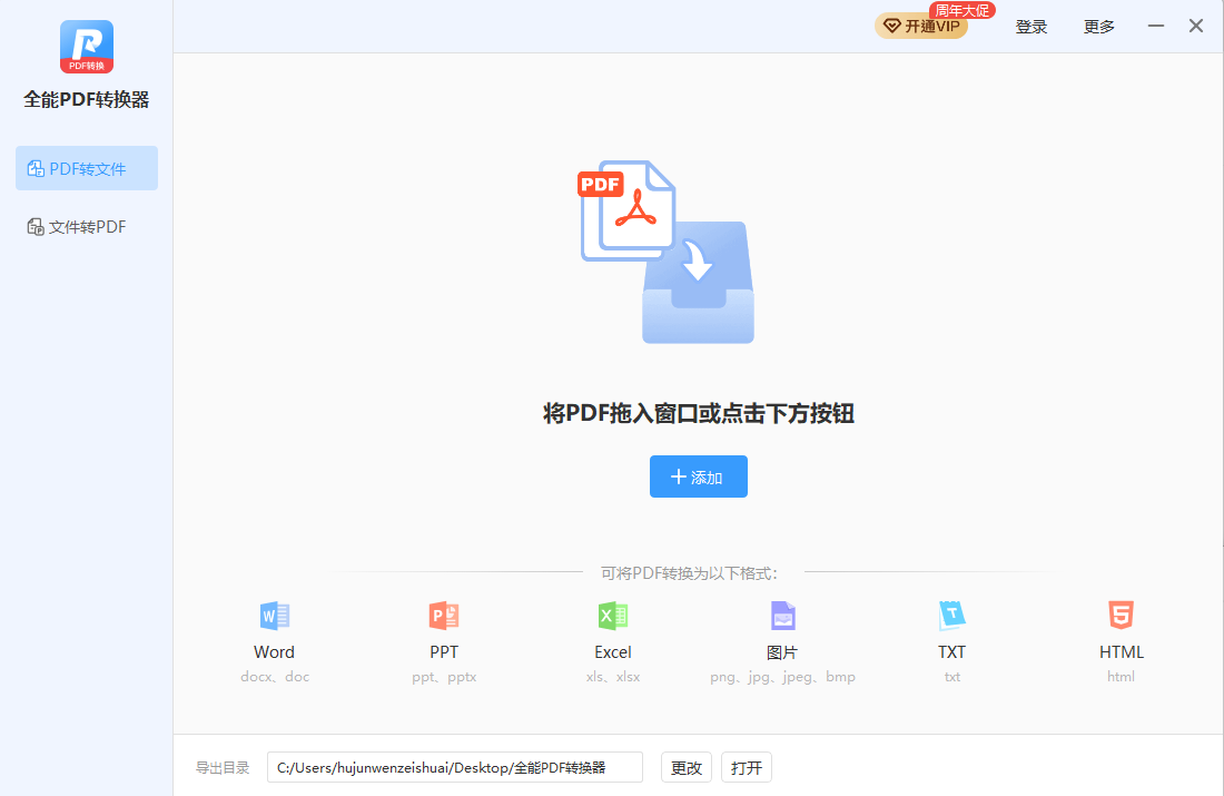 全能pdf转换器,支持多种文件之间转换,可实现pdf转word,pdf转图片,pdf转ppt,pdf转excel,pdf转txt,pdf转html;word转pdf,ppt转pdf,excel转pdf等功能。操作简洁方便,一键快速转换,并能够批量转换,转换后保留页面排版及元素。