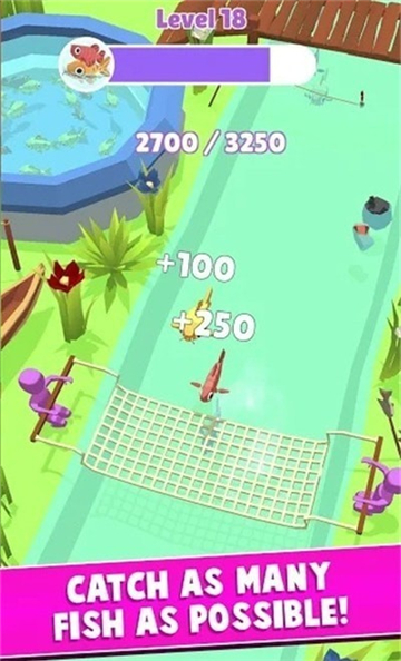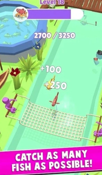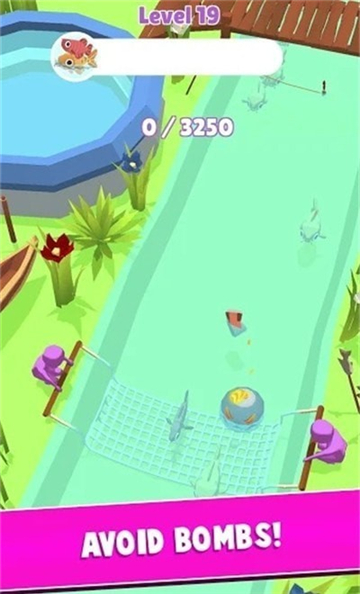 渔网派对一款新颖好玩的休闲类手游,游戏中玩家需要用铺好的渔网捞鱼,同时注意河流里飘来的炸弹、易拉罐以及纸箱子等,捞的鱼越多,积分越高,获得的奖励越丰厚,这款游戏中有非常清新简约的画面,的游鱼形象,带给玩家非常放松的感觉,在轻松愉快的氛围当中收获到更多的游戏。