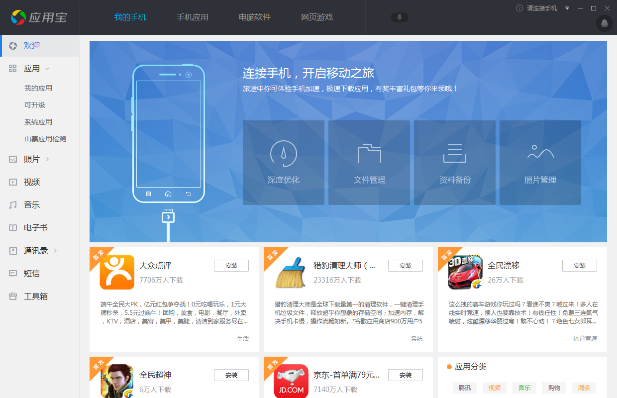 应用宝套装版是中心专为智能手机用户打造的应用获取平台。