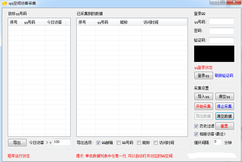 QQ空间访客提取软件是一款可以不受空间设置限制,可以批量提取任意QQ号码空间最近访客号码的提取软件,软件绿色免安装版,可以直接使用,操作。