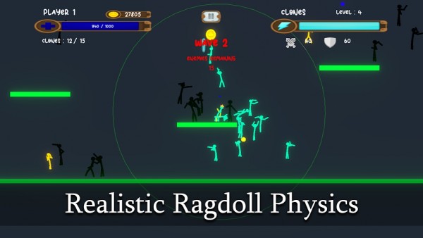 2、这是一款刺激十足的游戏,玩家可以控制着自己的火柴克隆人们进行战斗。
