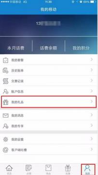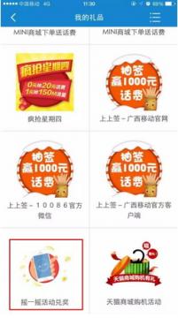 第一步:登陆“广西移动客户端”— 进入“我的”— 进入“我的礼品”