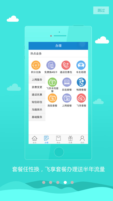 2、秒办业务:流量加油包、通话优惠包、亲情网/友情网等业务一键办理;