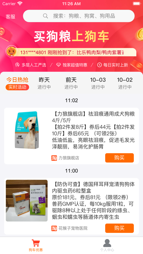 狗车app,一款汇聚多种狗粮品牌的宠物商城,狗粮、狗窝等宠物用品尽在其中,资源丰富,价格实惠,为宠物主带来更贴心的购物体验。