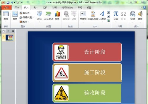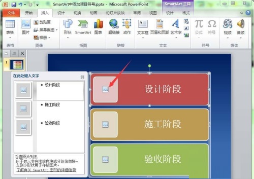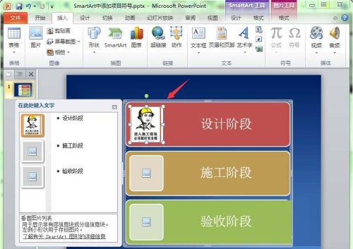 SmartArt 创建成功后,输入的文字,现在我们要在每个SmartArt的前面插入图片