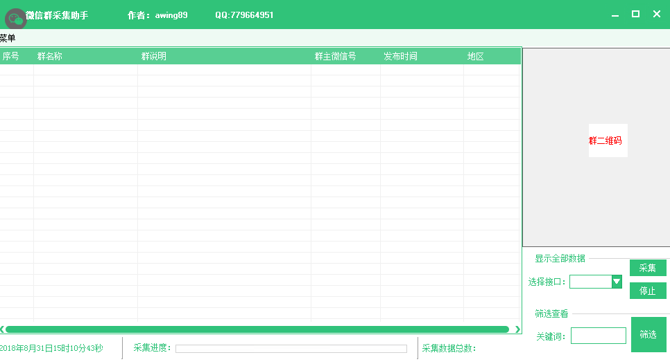 微信群采集软件是一款无需注册,打开既能使用的微信群采集工具,它可以通过导入关键词来手机微信群二维码,由自己来选择加不加入,十分方便。