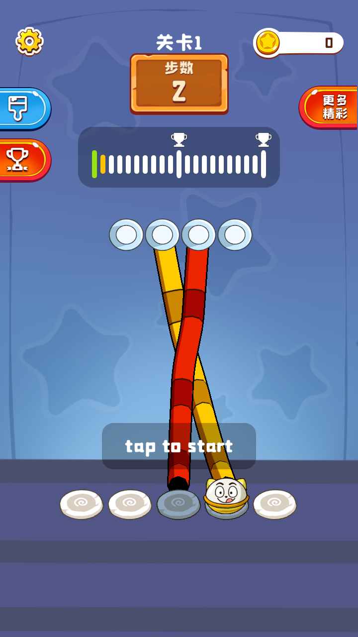 找到它们交叉的节点,慢慢解开,按照顺序来理清绳子,注意好破解的方式,避免将绳子缠成死结,玩法丰富有趣。