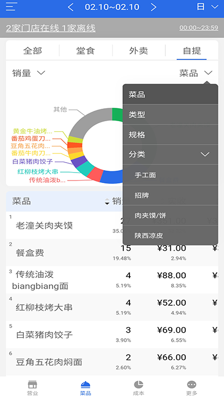 3.可以查看当前的营业情况,外卖情况,达成率等店铺核心数据