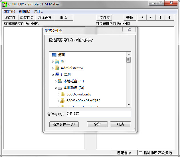 CHM是一种富格式、功能强大的网页型帮助文档格式,微软的大部分帮助使用这种格式。CHM_DIY(CHM软件)是一个按文件夹快速制作CHM帮助文档的绿色小程序。本程序可根据一个文件夹的结构和其中HTM网页的链接关系,快速生成一个CHM文档!