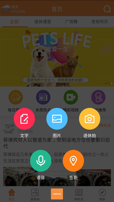 退休好时光是为中老年人推出的一款平台,在这里可以交友聊天、健康养生,满足全方位的需求,带给您不一样的全新体验。
