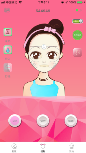 智能面膜APP通过手机蓝牙与智能导入仪连接,用户在使用仪器时,结合配套的爱集颜智能面膜使用,采用电磁技术,智能导入仪向面膜输出生物电流和射频波段,因此面膜上的生物电流射频波段能将面膜上的精华液深层地导入到皮肤,使面膜中的有效营养成分被肌肤充分吸收,在家就能达到美容院的针剂注射美容的效果。而APP就相当于一个主机房,全程实现智能管理操作。