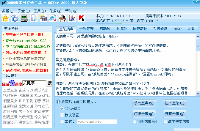 11.安全资讯:最新的病毒木马查杀方法、系统漏洞补丁、安全资讯、电脑技巧、QQKAV进程知识库等都在这里及时展现。