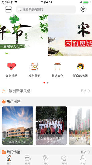 章贡文化iOS版是一款公共文化服务app,提供文化活动、虔州风韵、非遗文化、群众艺术团等功能版块,让广大用户轻松了解本地文化特色,感兴趣的朋友,赶快来下载吧!