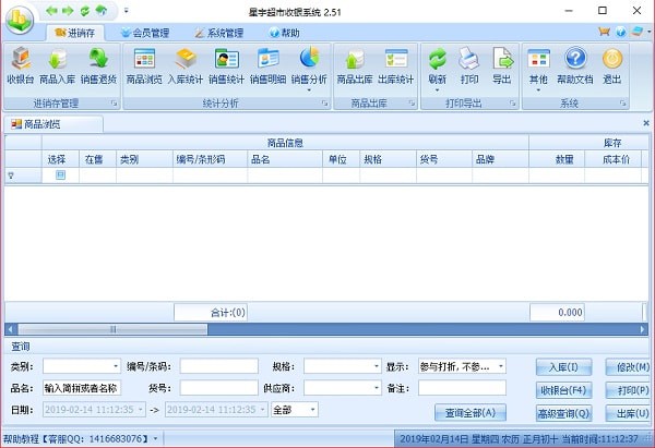 《星宇超市收银软件》支持小票打印和条码扫描、条形码扫描枪、电子条码秤、小票打印机、顾客显示屏、钱箱功能,使用该软件可以方便地进行进、销、存、及收银的管理,会员管理、积分兑换、充值消费、生日提醒、商品保质期、用户权限管理,自定义小票,库存报警提示,打印导出,自动备份。主要包括进货、销售(即POS收银,打印小票)、销售退货、存货查询、进货统计、销售统计、利润分析、日月统计、导购统计、权限管理、功能配置、备份还原、交班结算、库存盘点等功能,满足一般店铺的日常经营业务需要。 同时,此款软件也是一套免费,几乎完全胜任会员管理所需工作。