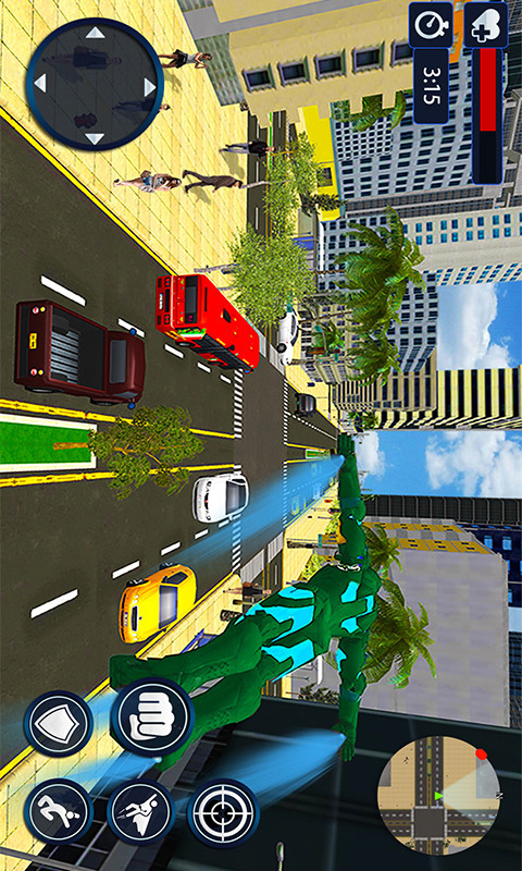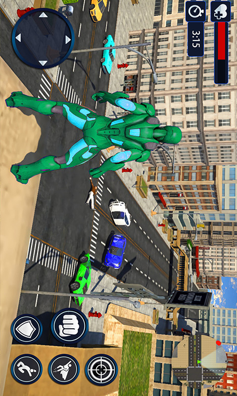 2、在城市之中自由的飞行,寻找各种各样的犯罪活动,并将那些穷凶极恶的歹徒们全部缉拿归案。