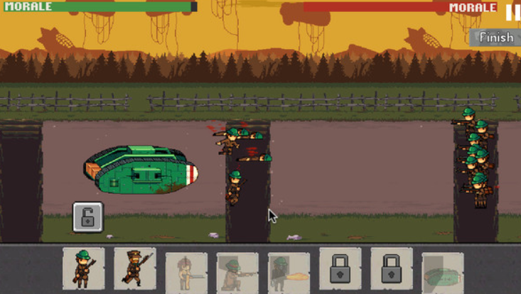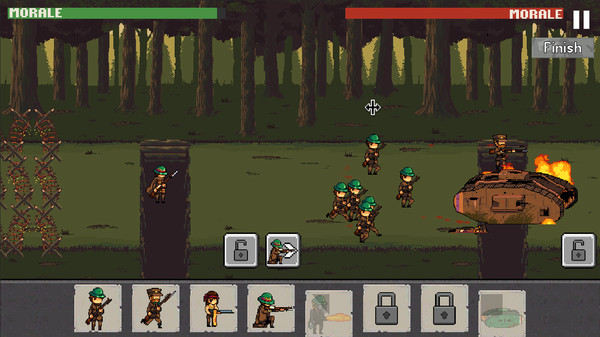 一战1917是一款以一战为背景的像素战争游戏,游戏中的各种武器设定都有参考一战中的武器,各种战术的设计也是会让你感受一战中的氛围,像素的画面确保了不会或与血腥。