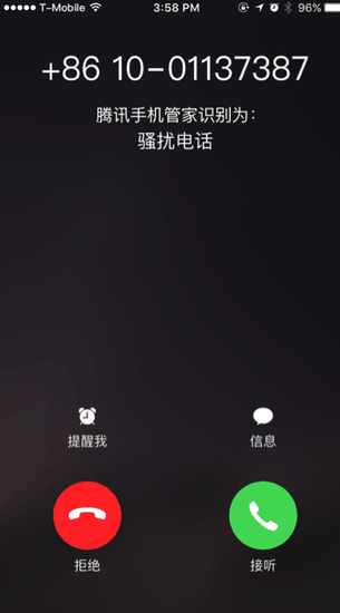 安装腾讯手机管家之后,当来电页面显示 “诈骗电话”、“骚扰电话”(腾讯手机管家识别)字样时,用户可以拒绝接听。此前通讯录中的骚扰或诈骗电话,也会显示为“腾讯手机管家识别”,提醒用户多留一个心眼。如果实在难堪其扰,用户可以将恶意号码添加至黑名单,下次该号码打进来时会自动拦截。目前,新版腾讯手机管家已经正式登陆苹果App Store,准备iOS10的用户们可以先升级一下腾讯手机管家,待iOS10推送升级以后就能直接开始使用了。