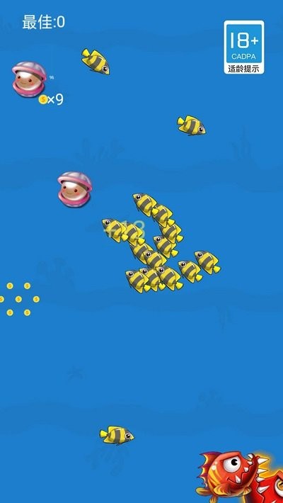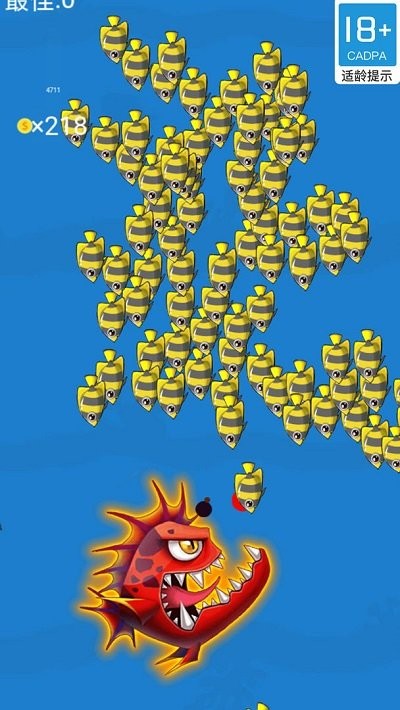 1、随着游戏的进行,简单直接的游戏玩法,玩家可以解锁各种鱼类,体型也越来越大。