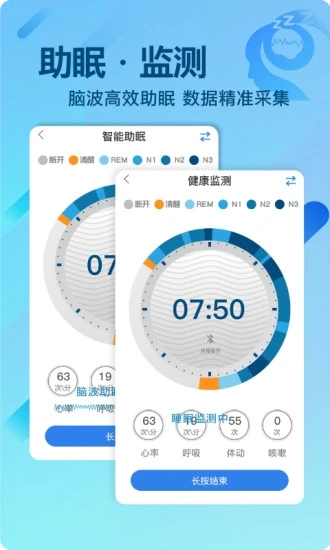 该应用是为睡眠困扰者提供可穿戴式的醒脑与助眠工具,同时可自由搭配与e睡眠app配套的基础生理指标传感器、自主神经传感器、脑电传感器实时反馈睡眠状态数据,辅助用户个性化进行睡眠改善与优化。